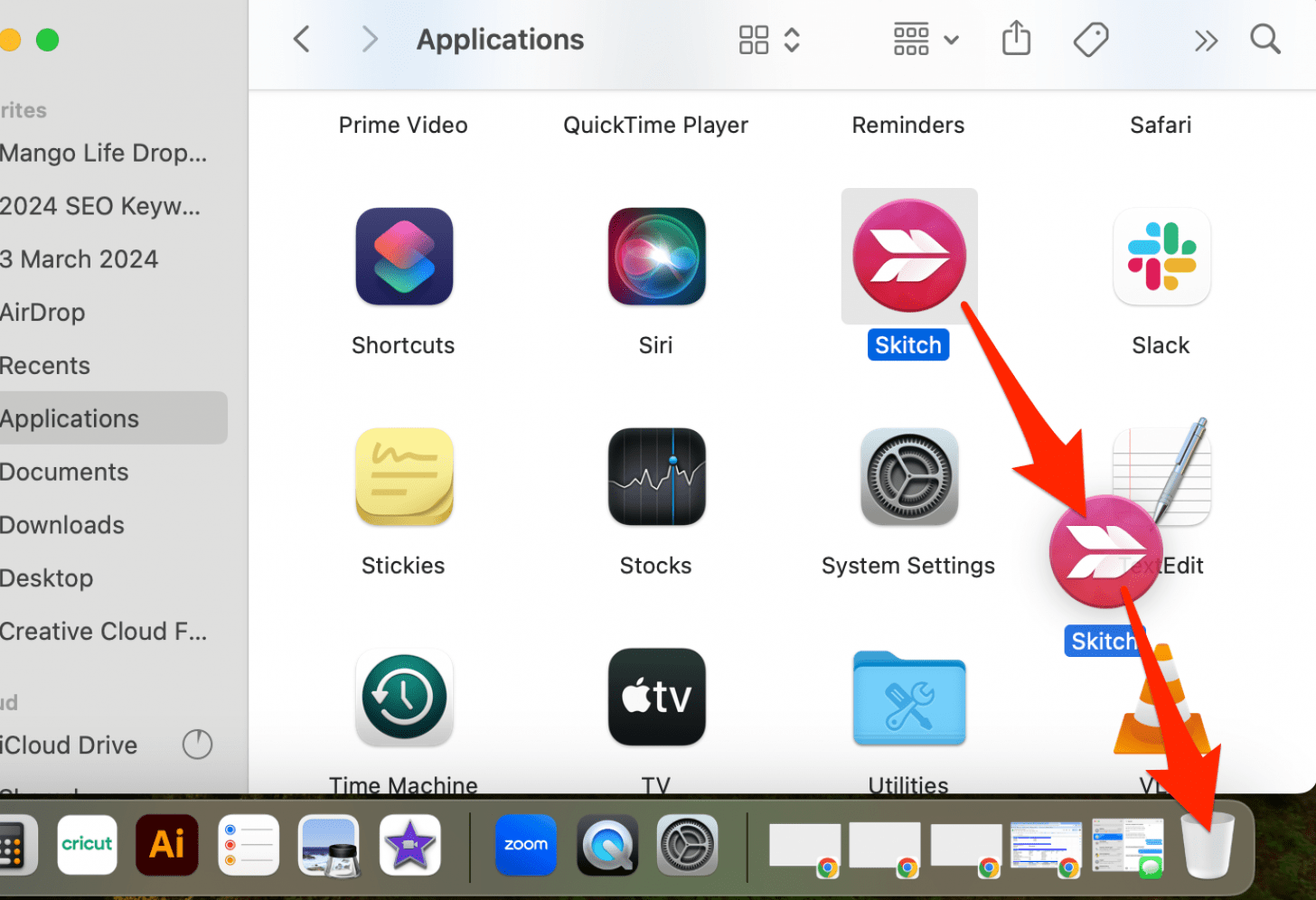 - 앱을 휴지통으로 끌어다 놓고 휴지통을 비웁니다.